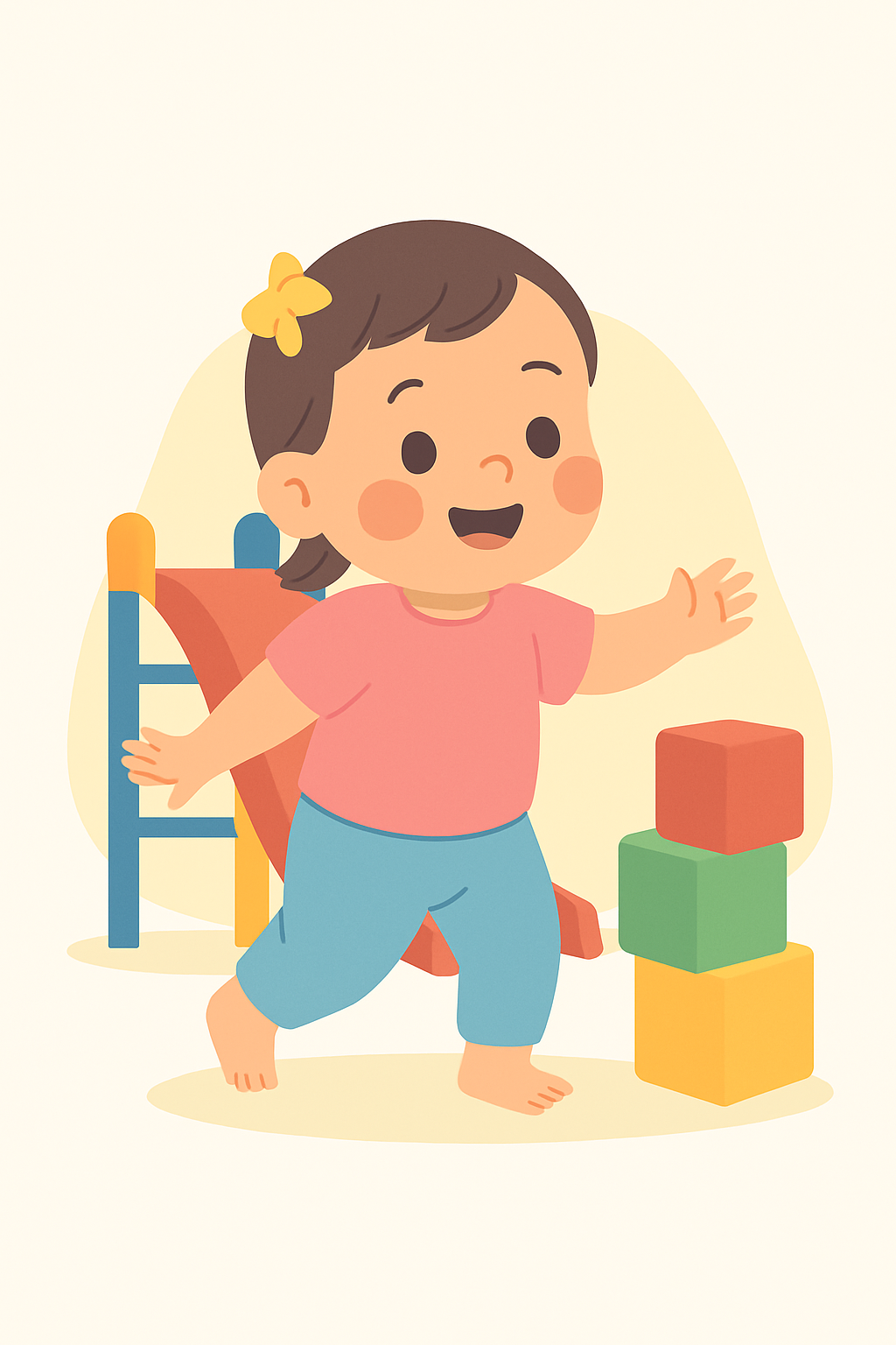 Nesta fase, a menina fala frases curtas, corre com firmeza e participa de brincadeiras mais estruturadas. As birras aparecem como reflexo da busca por autonomia.
