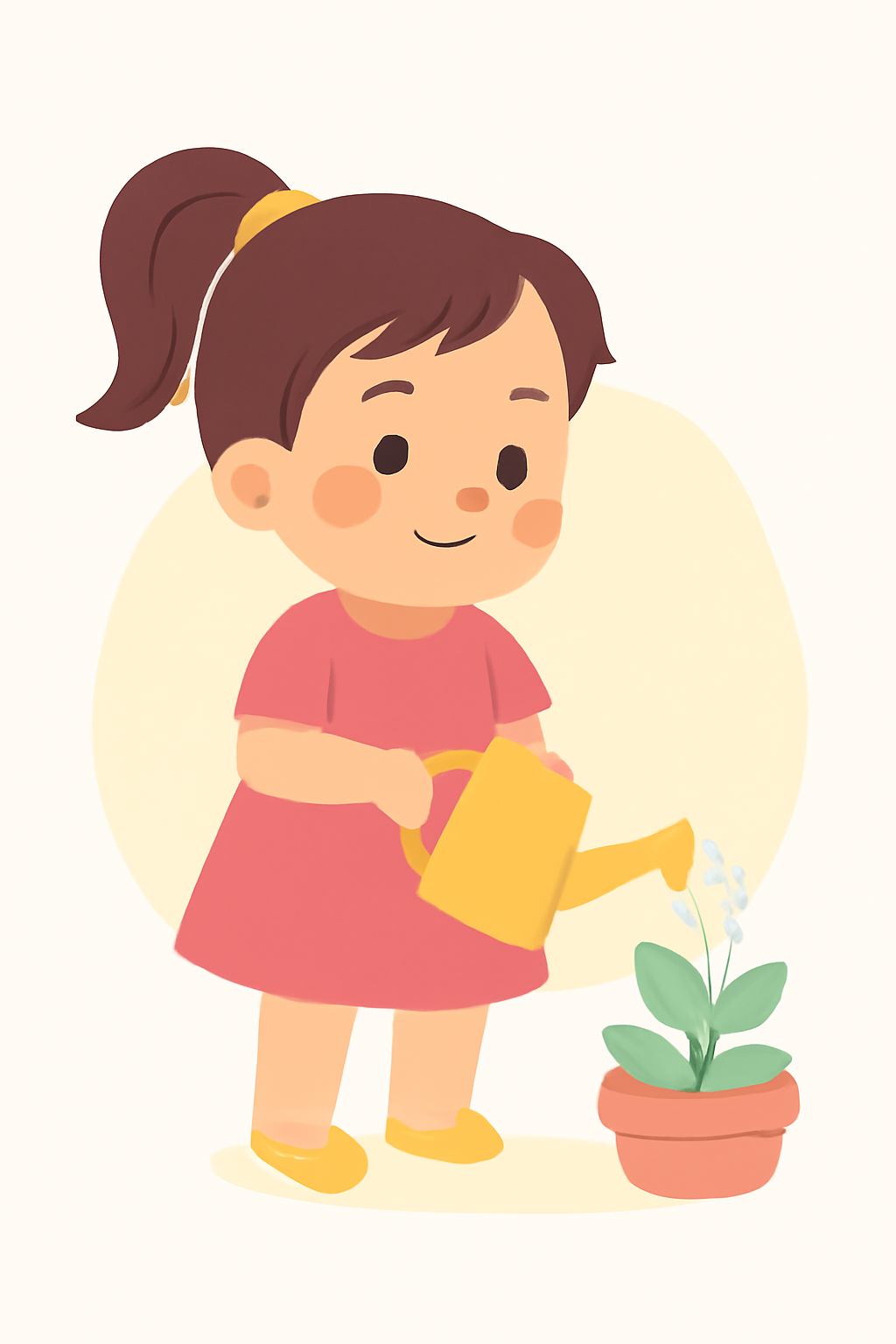 A menina mostra independência em se vestir, alimentar-se e realizar pequenas tarefas.