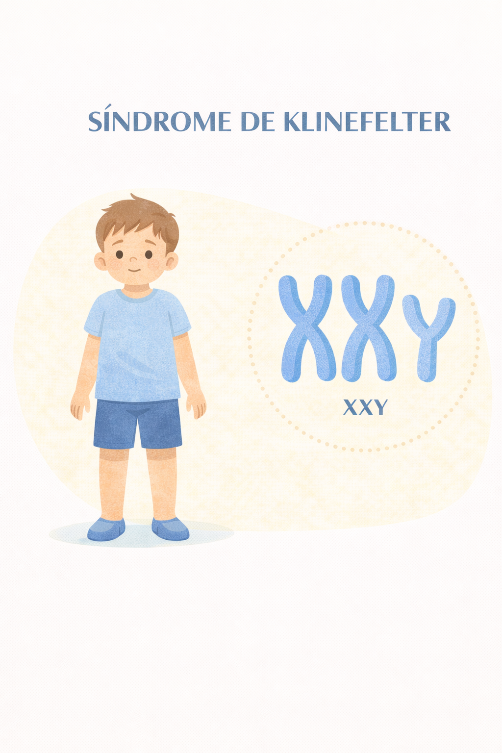 A Síndrome de Klinefelter é uma condição genética masculina causada por um cromossomo X extra (47,XXY), sendo a principal causa de hipogonadismo e infertilidade no sexo masculino.